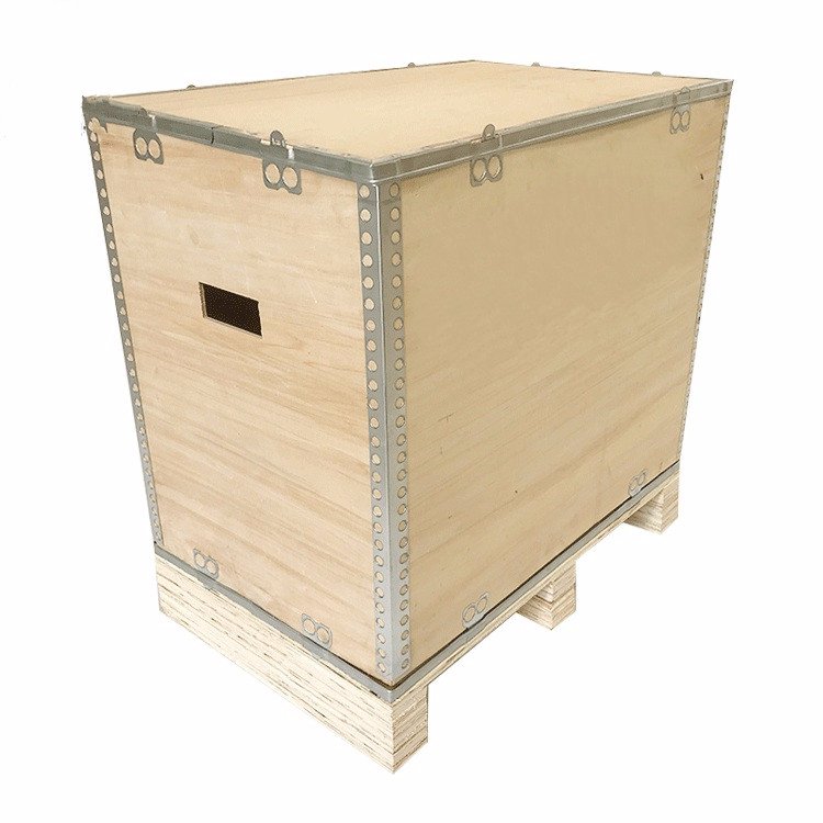 钢边箱采用镀锌钢带并结合舌型锁扣的特殊结构,将六个胶合板面板组合而成,可折叠、可拆装的胶合板包装箱,连接件为可冲压级冷轧镀锌钢带及舌型扣件,采用的板材是人工复合而成的多层胶合板,以确保包装箱品质坚固耐用,全程保护箱内货物安全。